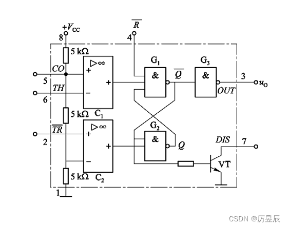 when , The output terminal is high level , The discharge end is disconnected . Power Supply
