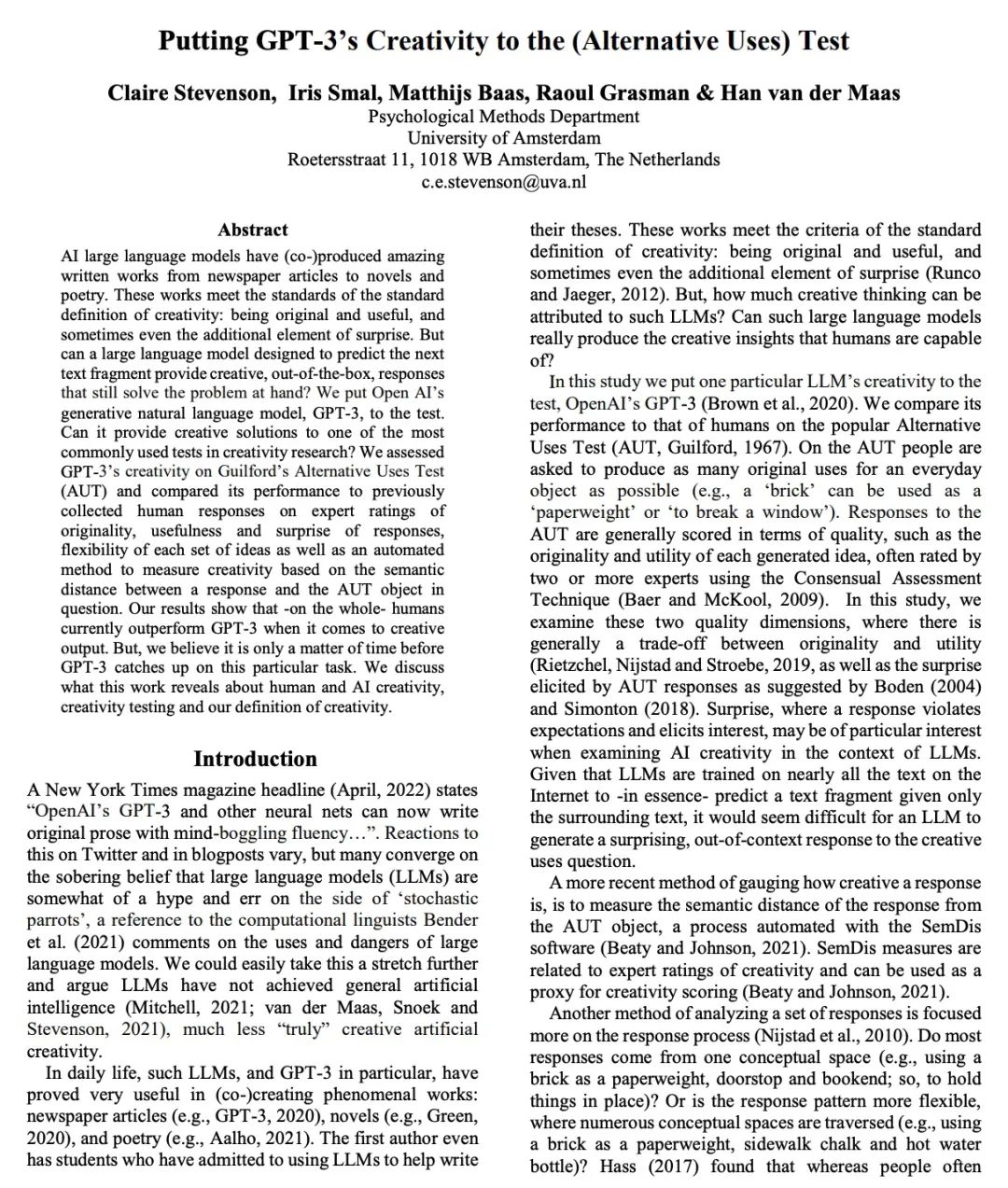 [LG] Putting GPT-3's Creativity to the (Alternative Uses) Test