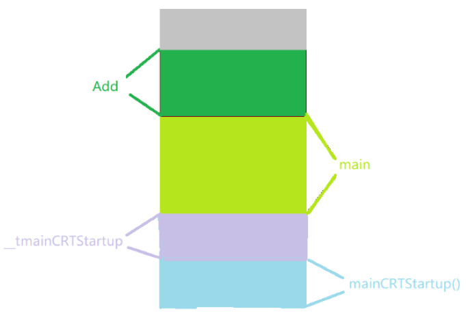 First , because main The function is to be __tmainCRTStartup() Called , So at first, the stack area is :