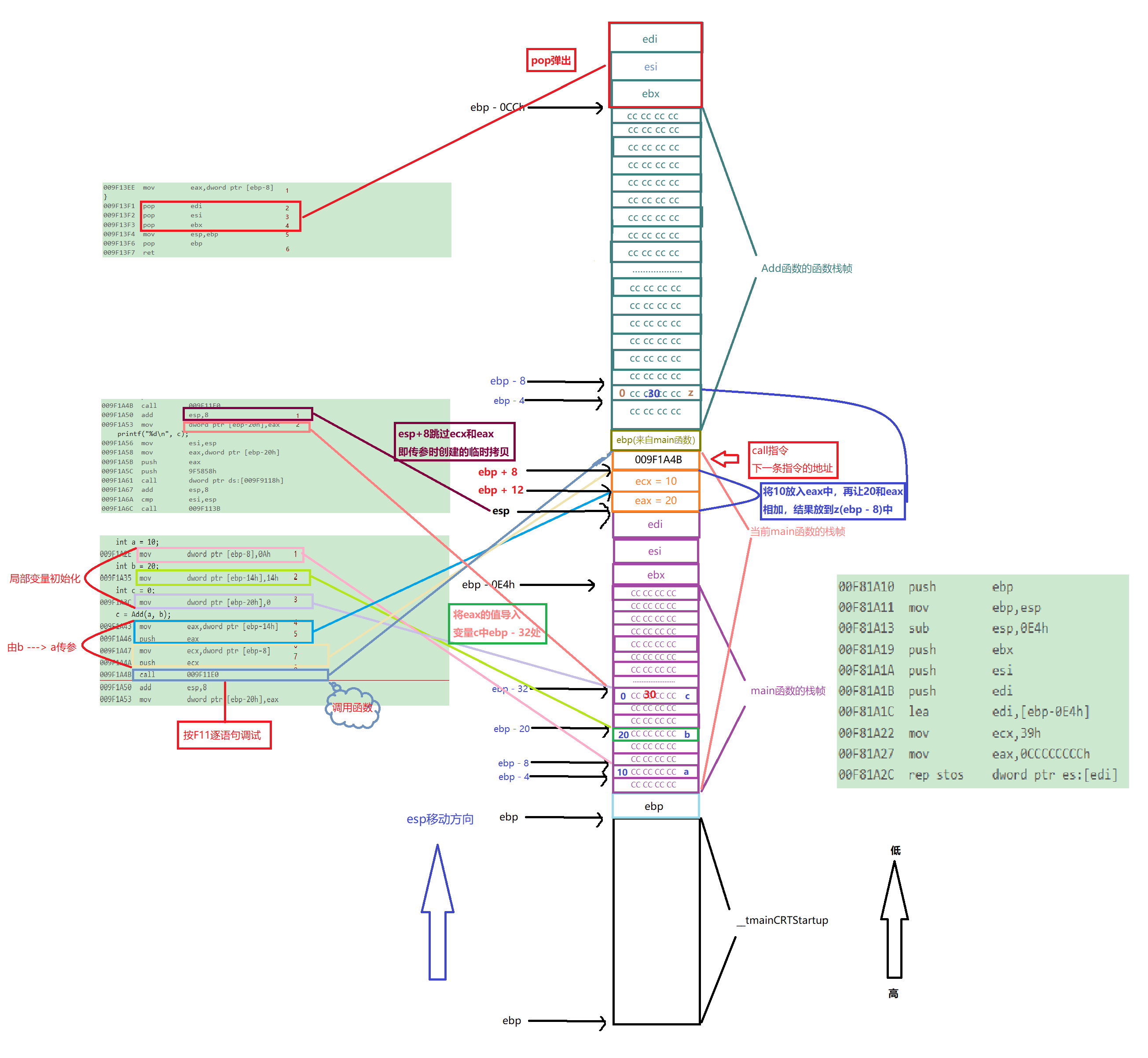 main Function parameter a The value of the parameter. - add eax,dword ptr [ebp+0Ch]: take ebp + 0Ch The value in is added to eax in ,ebp + 0Ch by ebp + 12, by