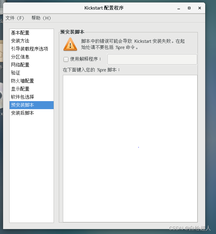 Enter the application in the upper left corner of the desktop , Select system tools , choice kickstart, Then set it step by step