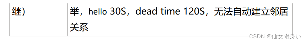hello时间和死亡时间:邻居双方hello时间和死亡时间必须相同,否则将导致邻居关系建立失败。