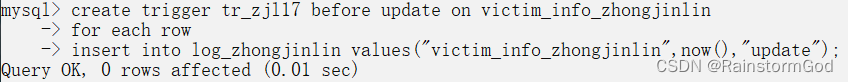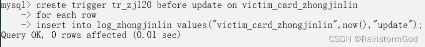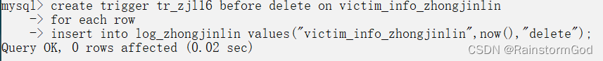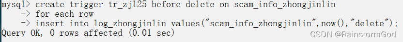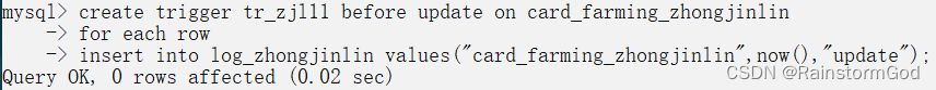 13.    Create triggers to facilitate updating log tables ( All tables are required to add , Delete , Change Will be recorded in the log table (log))