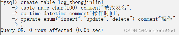 12.    Create a log table “log_ Spell the name ”, The field information in the table is as follows :