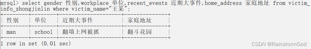 select gender Gender ,workplace Company ,recent_events Recent events ,home_address Home address from victim_info_zhongjinlin where victim_name=" Wang mou ";
