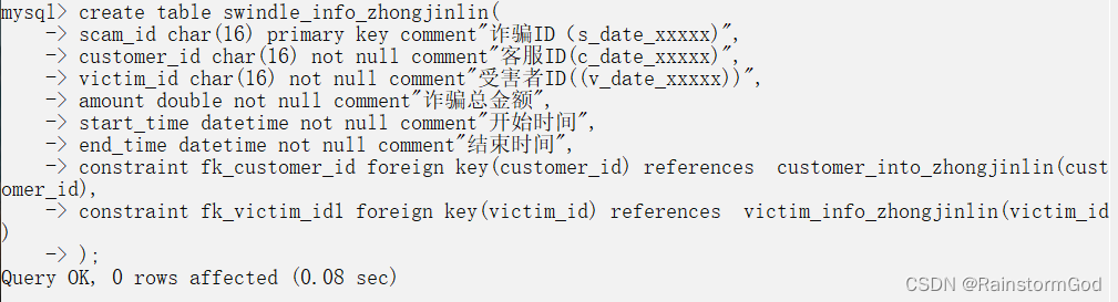 10. Create a fraud table “swindle_info _ Spell the name ”, The field information in the table is as follows :