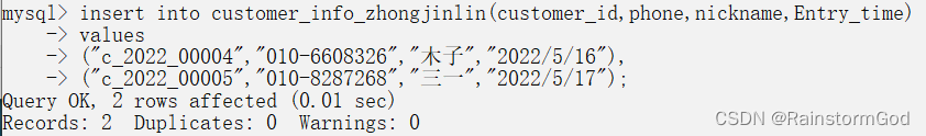 ​ edit 5. Then create a customer service information table “Customer_info_ Spell the name ”, The field information in the table is as follows :