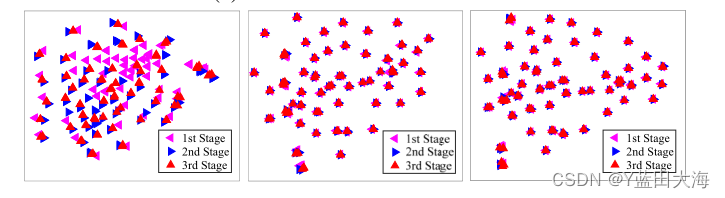 actually , The self calibration module we built gradually corrects the input of each stage by integrating physical principles , Thus indirectly affecting the output of each stage . In order to evaluate the influence of self calibration module on convergence , We plotted the relationship between the following results tSNE Distribution : We can easily observe , The results of each stage do converge to the same value . But without self calibration module , This phenomenon cannot be found . Besides , The above conclusion also reflects , We have indeed achieved the 2.1 The intention stated in the last paragraph of section , That is, use the weight sharing mode to train multiple cascaded blocks , But only a single block is used for testing .