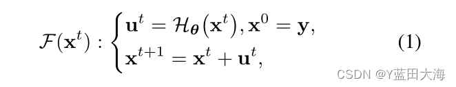 among u t and x t Each represents the t Stage (t = 0,...,T - 1) The remaining items and illuminance . It should be noted that , We didn't Hθ Mark the phase number in , Because we use the weight sharing mechanism , That is, use the same architecture at each stage H And weight θ.