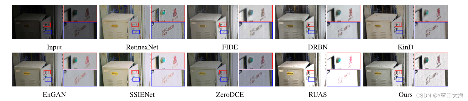 Comparison method . For weak light image enhancement , We will SCI And the four model-based methods proposed recently ( Include LECARM、SDD、STAR)、 Four advanced supervised learning methods ( Include RetinexNet、KinD、FIDE、DRBN) And four unsupervised learning methods ( Include EnGAN、SSIENet、ZeroDCE and RUAS) Made a comparison . For dark face detection , In addition to performing the above network-based enhancement before the detector , We also compare the recently proposed dark face detection methods HLA.