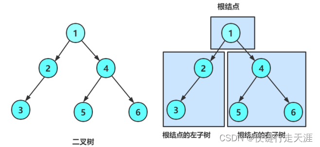 2. 由一个根节点加上两棵别称为左子树和右子树的二叉树组成