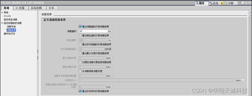 In the end of message option box Select message timeout to identify the end of the message Then fill in the message timeout box below 50( This value can be adjusted according to the actual situation )
