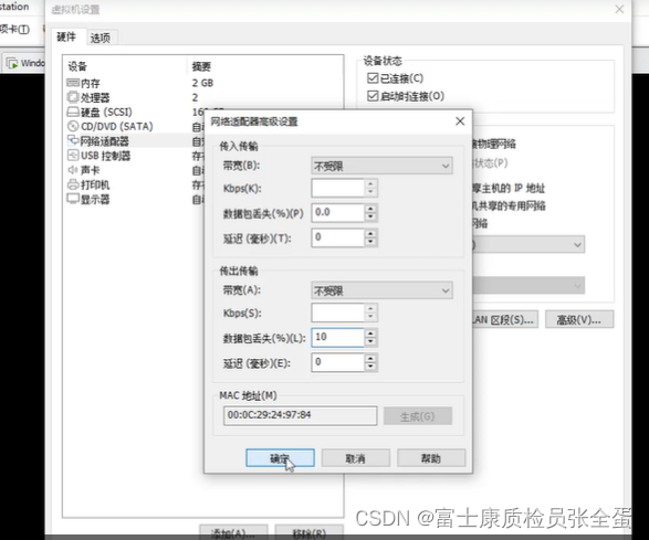 There is a function in the virtual machine , Specified packet loss rate .