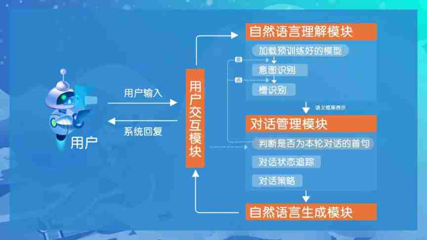 In the intelligent customer service robot system used in the Winter Olympics , Dialogue system belongs to task-based dialogue , It has a small scope 、 The theme is clear , Its functions are mainly handled by natural language (NLP) Natural language understanding under (NLU) decision .