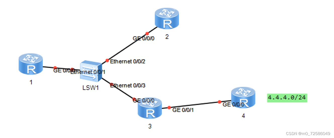 3.R4环回地址已固定,为4.4.4.0/24,其他所有网段使用192.168.1.0/24进行合理分配