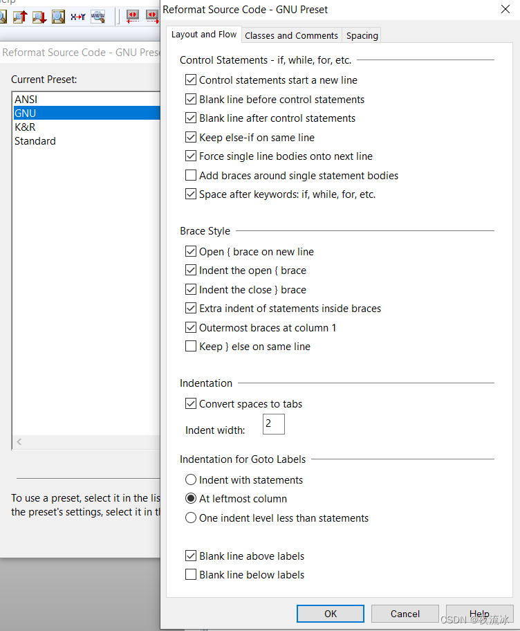 Yes ANSI、GNU、K&R Three coding styles can be selected .