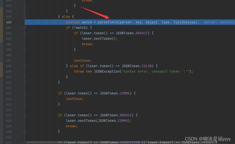 We execute the code to 773 That's ok , Get into parseField Inside .