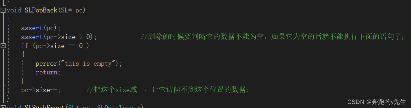 1:尾删SLPopBack直接进行对存放个数减一,因为访问不到所放数据也可认定为删除;