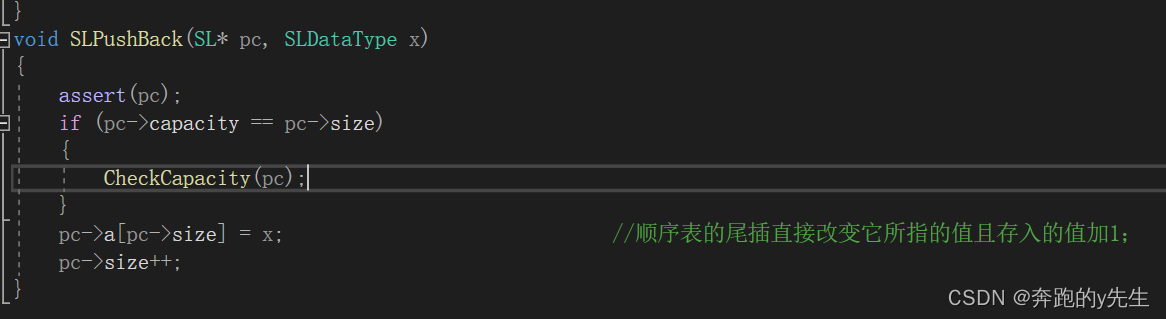 当然了,尾插一定要考虑顺序表的容量与所放个数的大小,必要时要进行扩容;