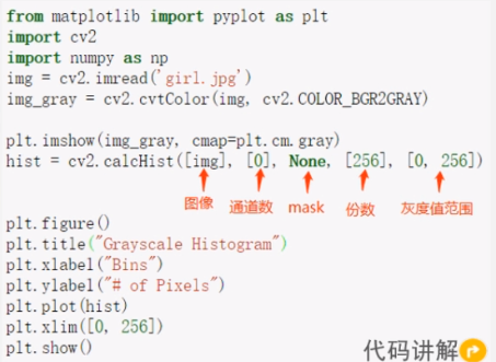 # Draw histogram , The parameters are img、 passageway 、mask、 Additional copies 、 Gray value range