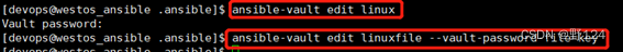 ansible-vault encrypt linuxfile --vault-password-file=key