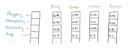 We will king The word sits in space from a vector that can be very sparse , Map to the space where the four-dimensional vector is now , The following properties must be satisfied :