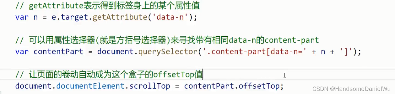 // 可以用属性选择器(就是方括号选择器)来寻找带有相同data-n的content-part