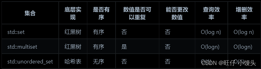当我们要使用集合来解决哈希问题的时候,优先使用unordered_set,因为它的查询和增删效率是最优的,如果需要集合是有序的,那么就用set,如果要求不仅有序还要有重复数据的话,那么就用multiset。