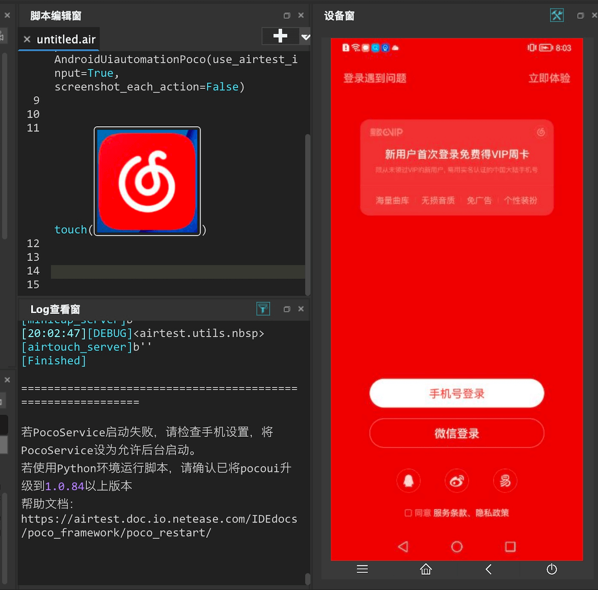 Here's an example : stay Airtest Operate Netease cloud music in APP :