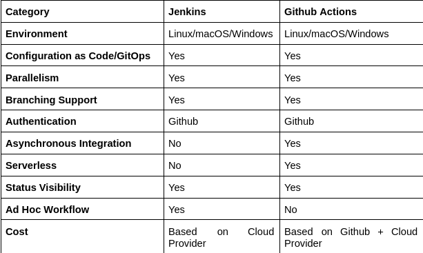 Github Actions vs Jenkins: A further comparison is shown in the following table :