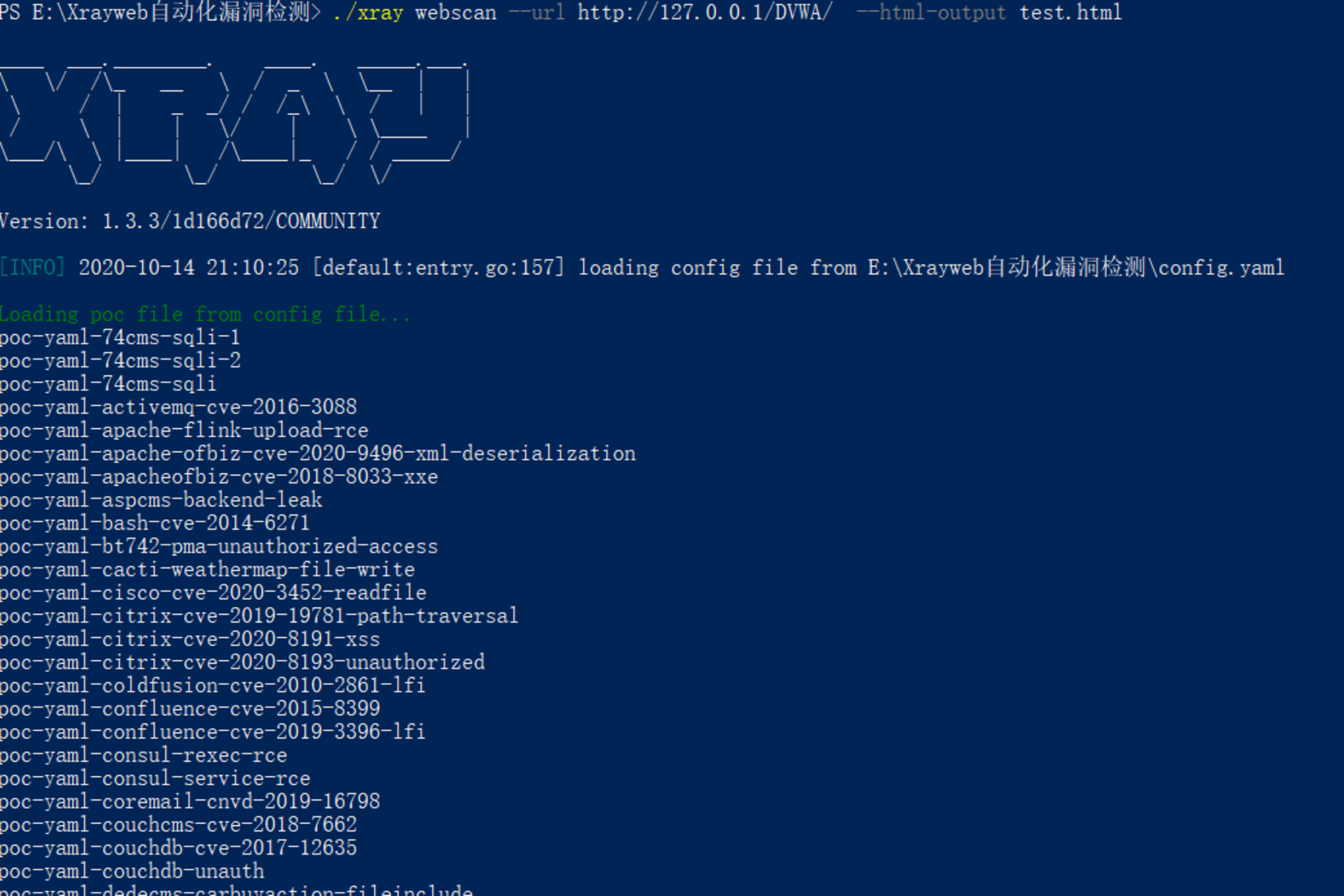 ./xray.exe webscan --basic-crawler http://127.0.0.1/DVWA/index.php --html-output test.html