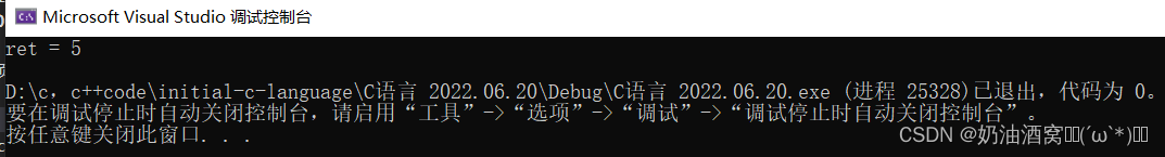 printf("ret = %d\n", ret);