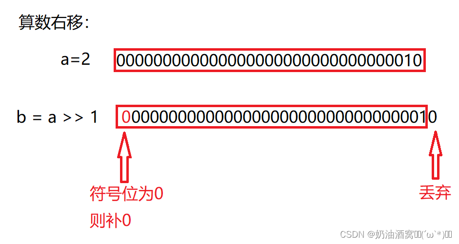 2. Logical shift right : On the right side of the discarded , Left complement 0.