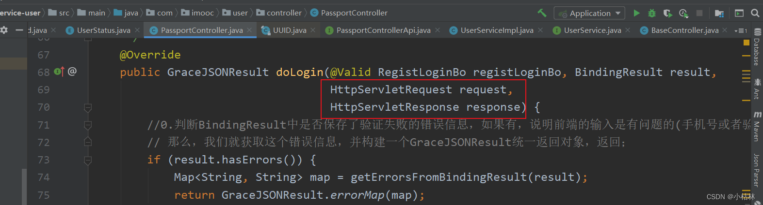 (5.2) Because of the settings cookie When , need request and response, So we injected HttpServletResponse and HttpServletRequest;