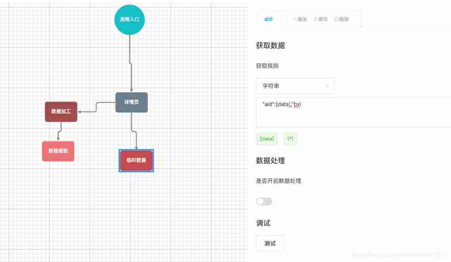 We have to pull one 【 The data processing 】 Components , The data processing , seeing the name of a thing one thinks of its function , Processing data .