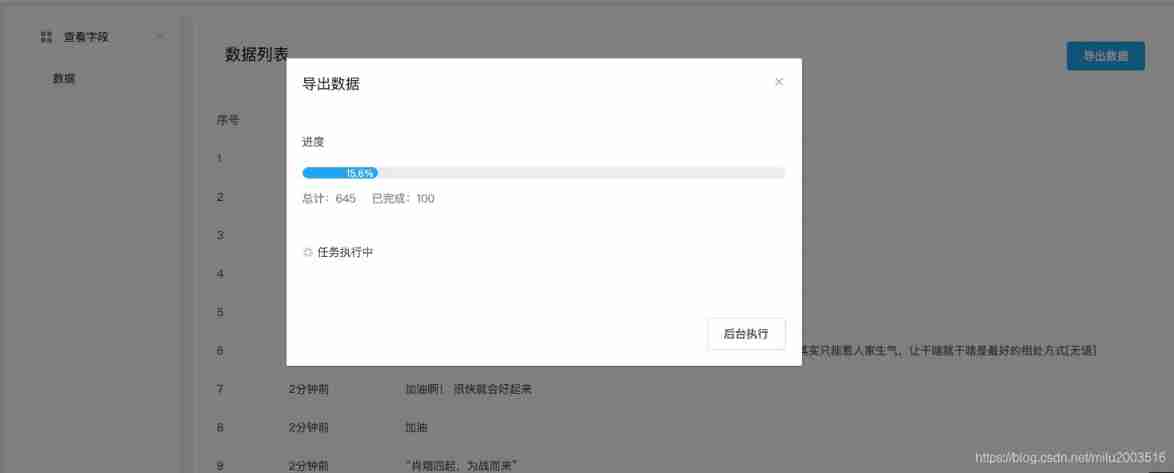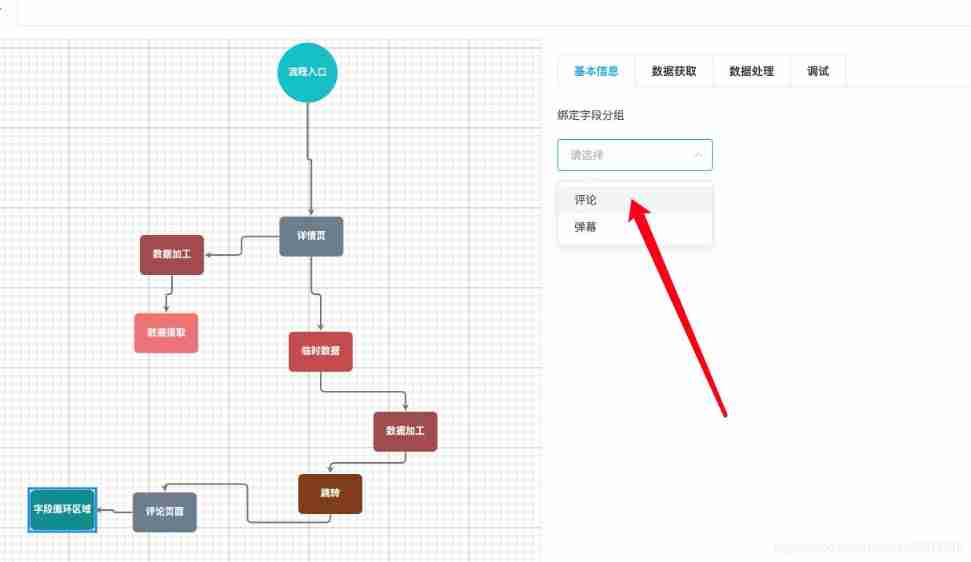 There are two key fields , They are barrage and comment , We set the data type to data grouping , For example, comments , Used to store multiple comments