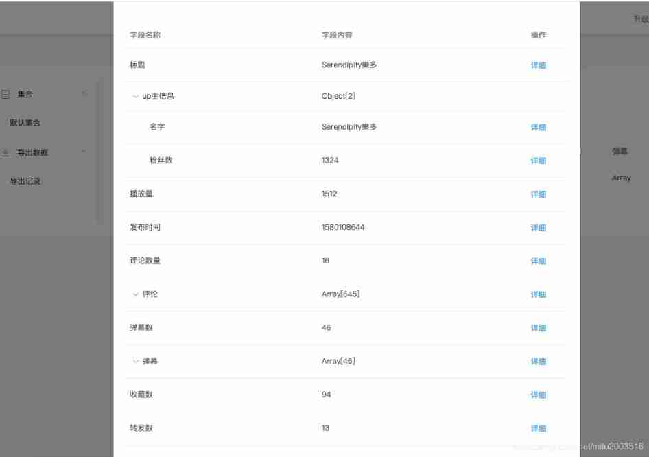 Including video data ,up Master's message , Including the number of fans 、 Play data or something , It's all inside .