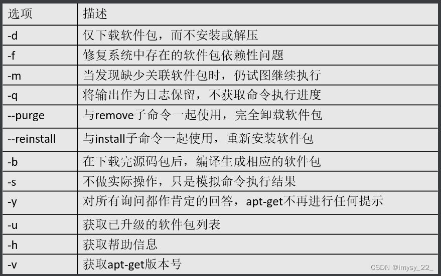 - OPTIONS:描述命令所有的参数或选项