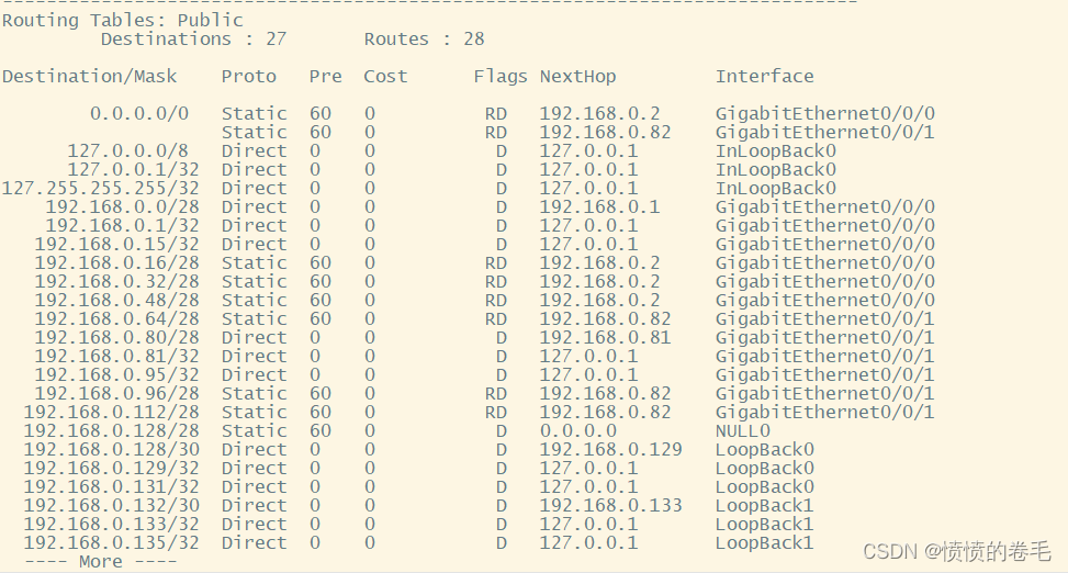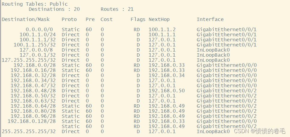 [r2]ip route-static 192.168.0.128 255.255.255.240 192.168.0.2