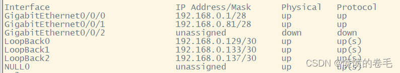 我们将母网192.168.0.0/24 可以向主机位借四位划分如下图的各个网段,其中ar2左侧的192.168.0.128/28网段我们又将其划分为ar2的三个环回接口网段分别为192.168.0.128/30,192.168.0.32/30,192.168.0.36/30