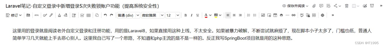 前段时间写了一篇提高Laravel用户登录,登录失败5次后,锁帐号的功能。