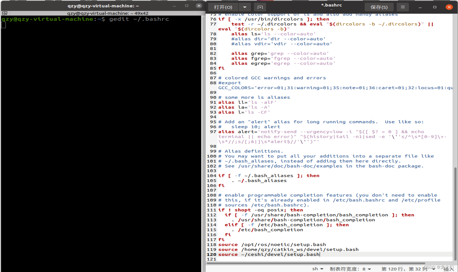 Permanent settings source Methods : Method 1 : Direct use at the terminal gedit or vi compile .bashrc file . (1) The terminal opens the confi...