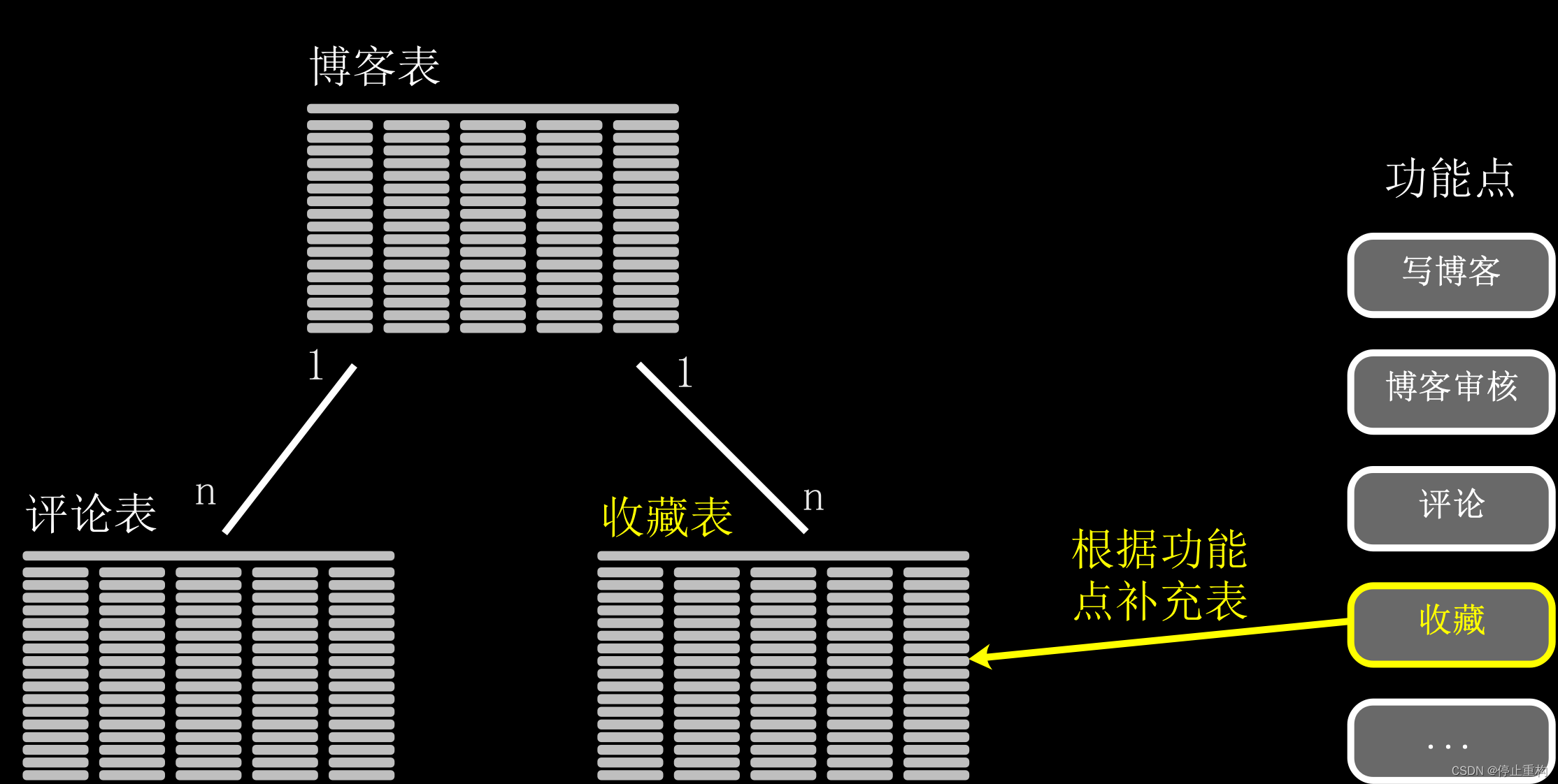 After defining the main tables You need to look at all the function points of this system , See if you need to add additional tables , If you find that there is a collection function in the blog system , Consider adding a collection table .