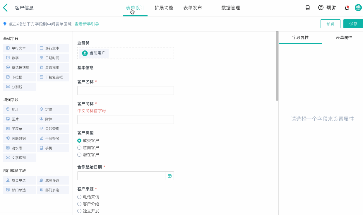 给字段配置高级功能,如公式、联动等,使得数据填写的过程更加方便自动化。