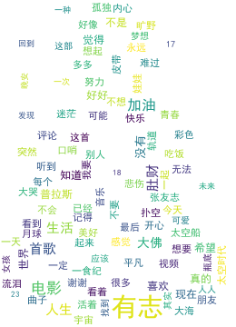 After analysis , Before the word frequency appears 10 It's about ambition , Power Supply , come on. , song , life , life , Belly wealth , Buddha , No, , Plath . Some of these words are movie titles , Or movie characters , Throughout the film ,