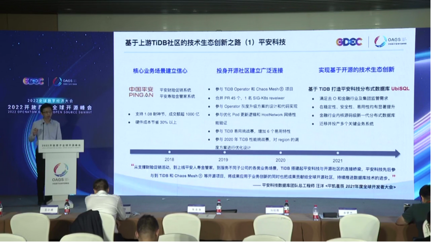 一是与平安科技的合作,平安科技通过核心业务场景建立信心,投身开源社区建立广泛连接,同时还基于TiDB打造了自身的分布式数据库UbiSQL,满足金融行业的监管需求,形成健康的开源生态。