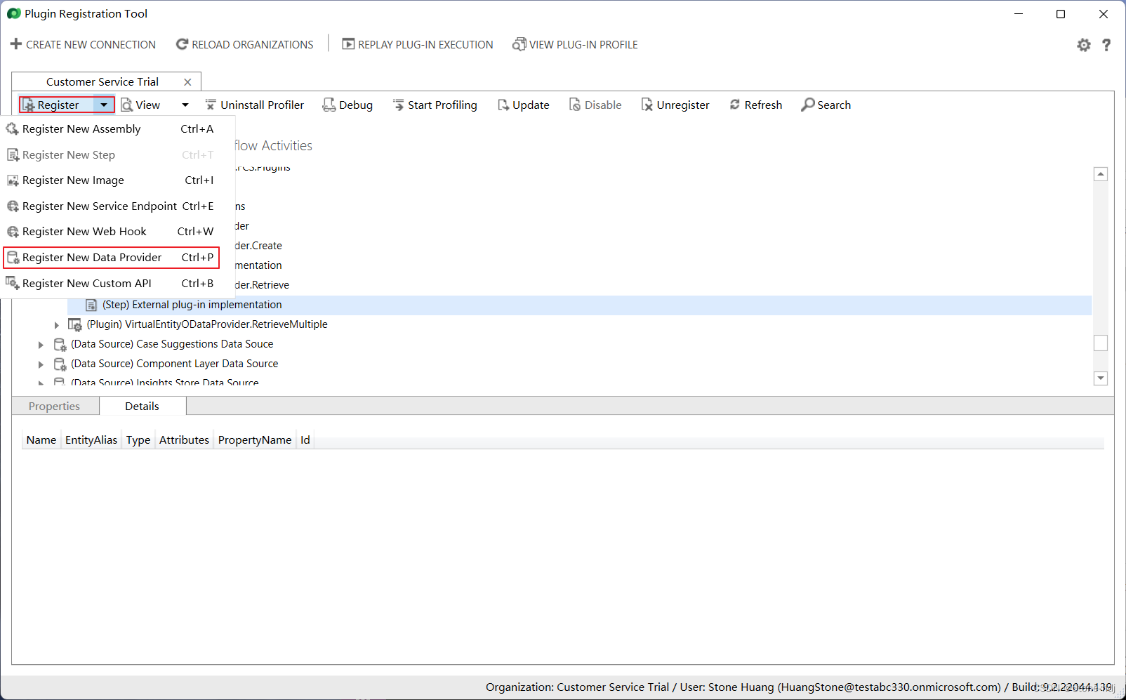 Plugin Registeration Tool: Register -> Register New Data Provider