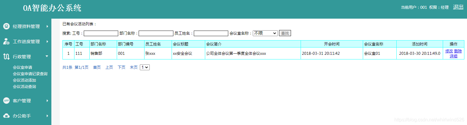 The above is based on JSP Realized OA Function display of office system , The system function is complete , The page is simple and generous , Suitable for graduation design .