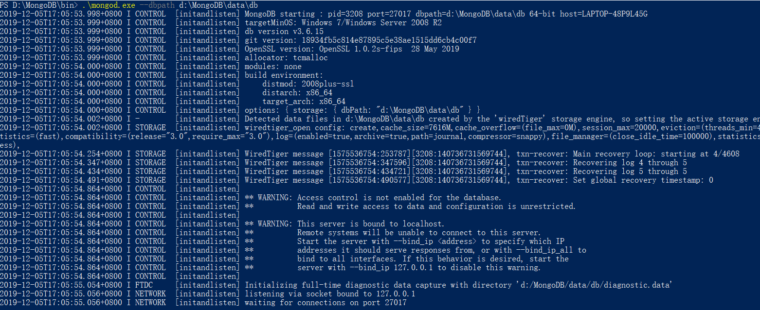 D:\MongoDB\bin\mongod --dbpath d:\MongoDB\data\db