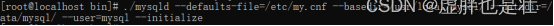 ./mysqld --defaults-file=/etc/my.cnf --basedir=/usr/local/mysql/ --datadir=/data/mysql/ --user=mysql --initialize